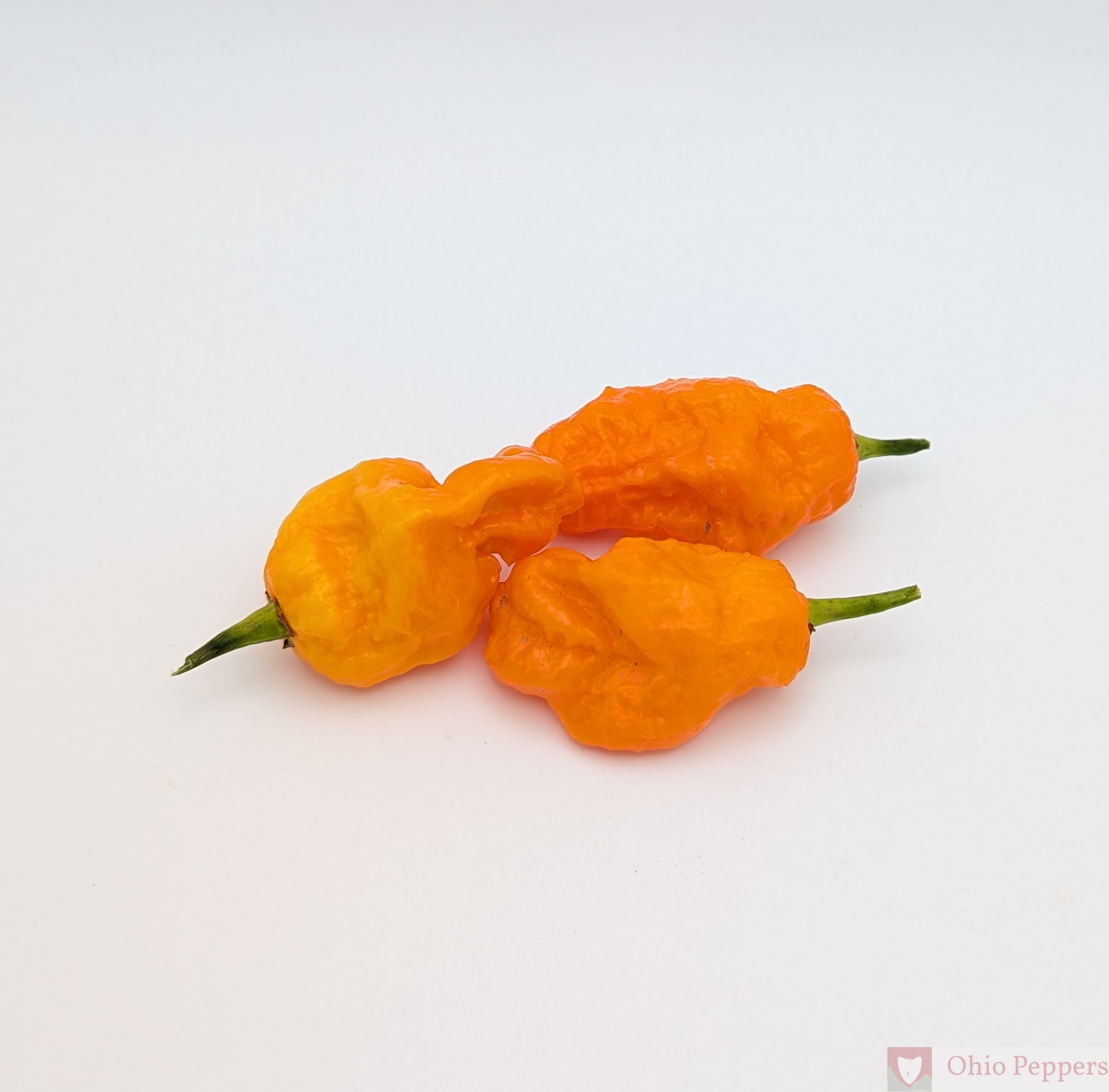 The BG7 smooth is late ripening in Ohio, ensure sizable start in the spring to have fruit before football season. Looks like a big ol’ wad of orange bubblegum. Great 7 pot heat!