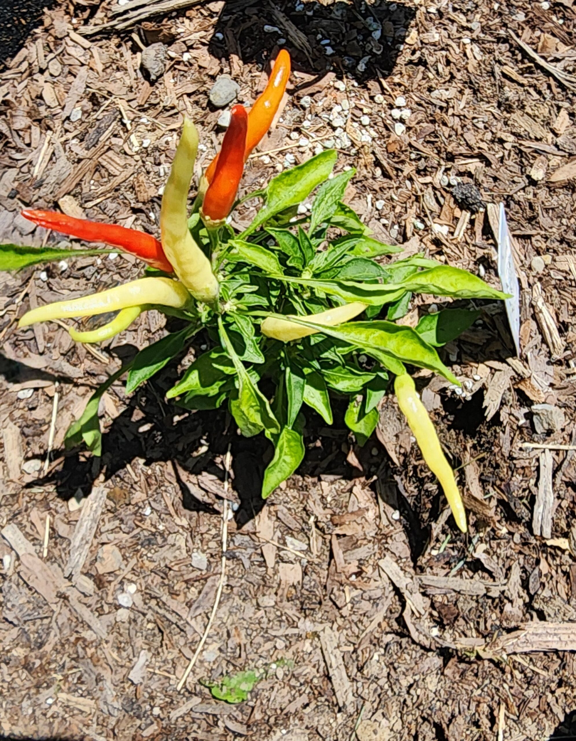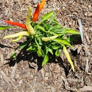 This is a compact ornamental cultivar, only reaching up to one foot in height. Its fruit, similar in appearance to the Medusa pepper, grows upright and ripens to a rich red. With a Scoville Heat Unit of around 3,000, it offers a mild spice, slightly more intense than the Medusa. While primarily an ornamental plant due to its striking appearance, the Fire and Ice Pepper is also edible, adding both color and mild heat to dishes.
