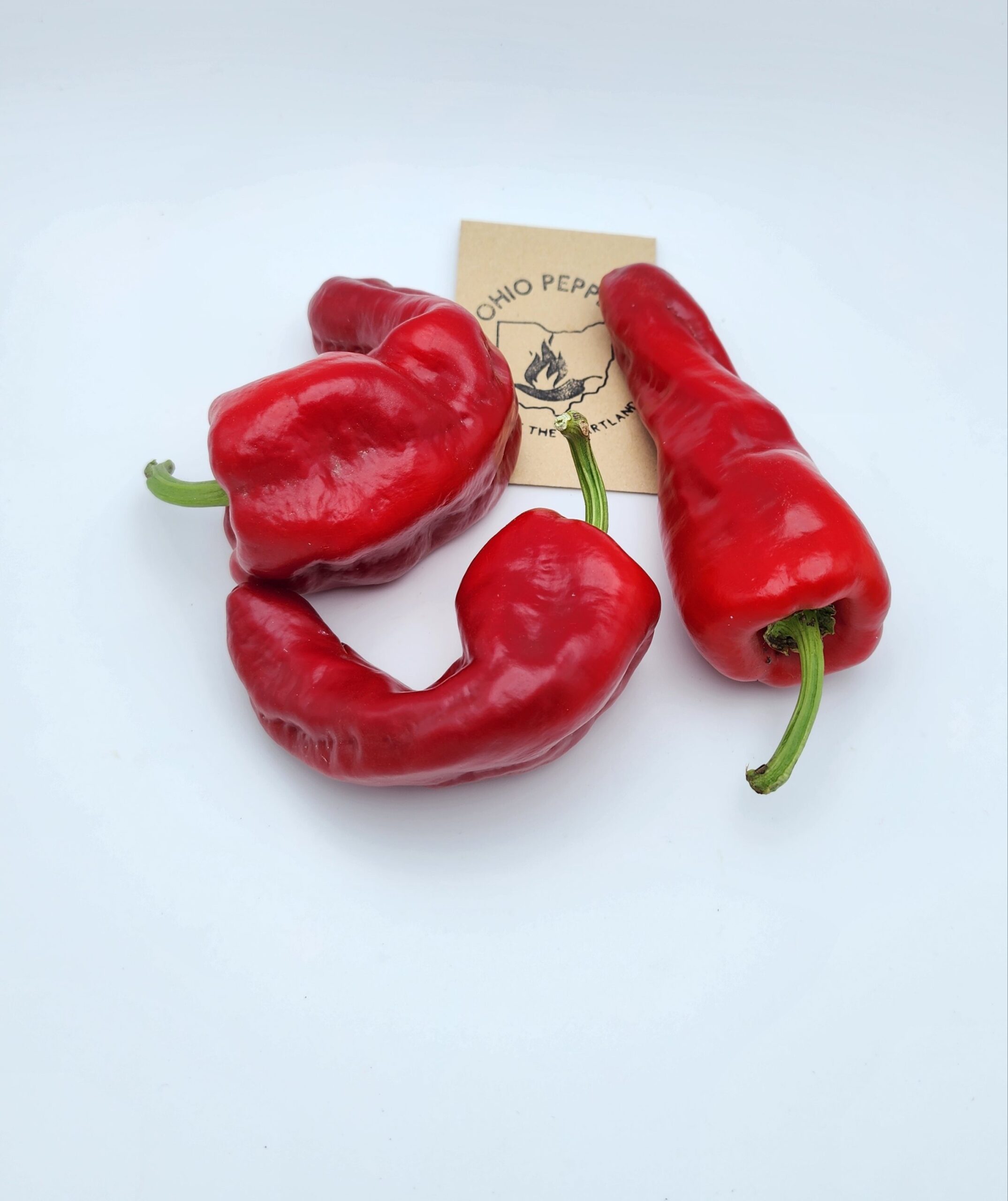 Alright, let’s cut to the chase. New for 2023, the Matay pepper, a red, larger-sized heirloom fella that calls Egypt home. It’s a Capsicum annuum, so you know it’s reliable and easier to grow. Size-wise, think of a small banana pepper, and you’re in the ballpark. Matay is productive. With the weight of the peppers, we recommend staking the plants.