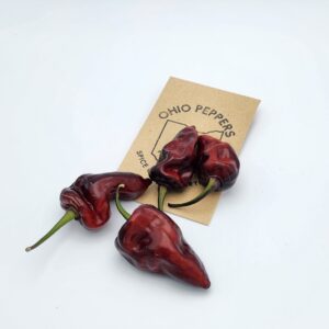 Fully ripe, I do not taste the 200-400K SHU some report. While not scientific, in a personal tasting of this cultivar, I estimate 20-40K SHU. Smell is another one of the unique characteristics of this pepper. The smell is best described as a funky floral – almost horse blanket like, to steal a homebrewing sensory term! Maybe a touch of burning tires.