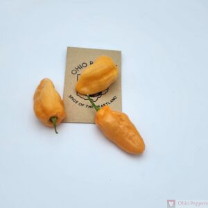 I grew one plant in a 5 gallon grow bag and it is doing great! The pods are a great size and the Peach color is brilliant. The sweet flavor hits you immediately with an ever so slight hint of floral flavor. The hint of floral though is very nice and pairs well with sweetness of the pepper. The heat, though, is the best part. It’s a decent building of heat that stays with you for a few moments and then slowly fades. So good!