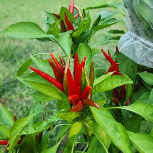 Super Khai is a Capsicum annuum from Vietnam. It is a compact Thai-type pepper. The fruit grow upright. They set in clusters. Pods ripen from green to red. Heat is around 50,000 SHU.