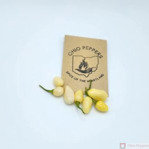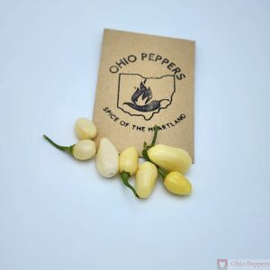 Tiny cute little white habaneros. Think of them as little flavor crystals. No need to bloviate further! No SHU testing, but a fairly well educated guess (err… chew) places this pepper on the extremely mild end of habaneros. 100Kish would be my best guess, with any error being on the lower end!